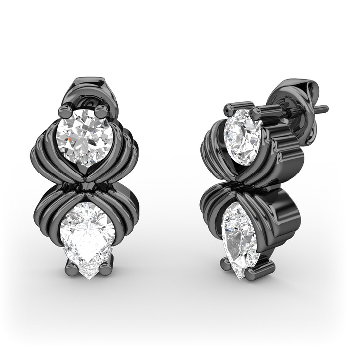 Beyaz zirkon ve pırlanta 925 ayar siyah rodyum kaplama gümüş küpe (0.48 karat)