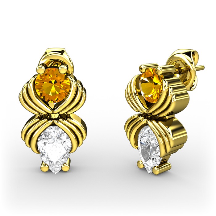 Beyaz zirkon ve sitrin 18 ayar altın küpe