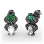 Beyaz zirkon ve yeşil kuvars 925 ayar siyah rodyum kaplama gümüş küpe