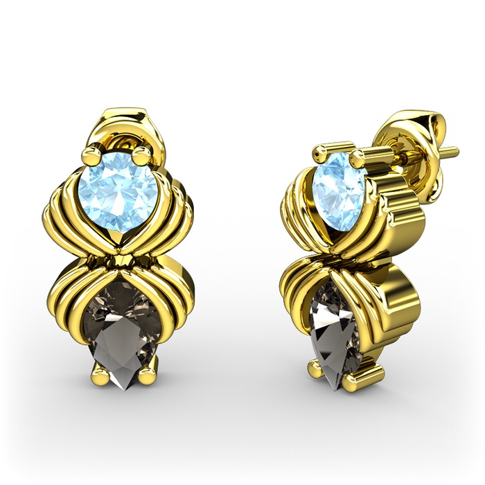 Dumanlı kuvars ve akuamarin 8 ayar altın küpe