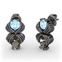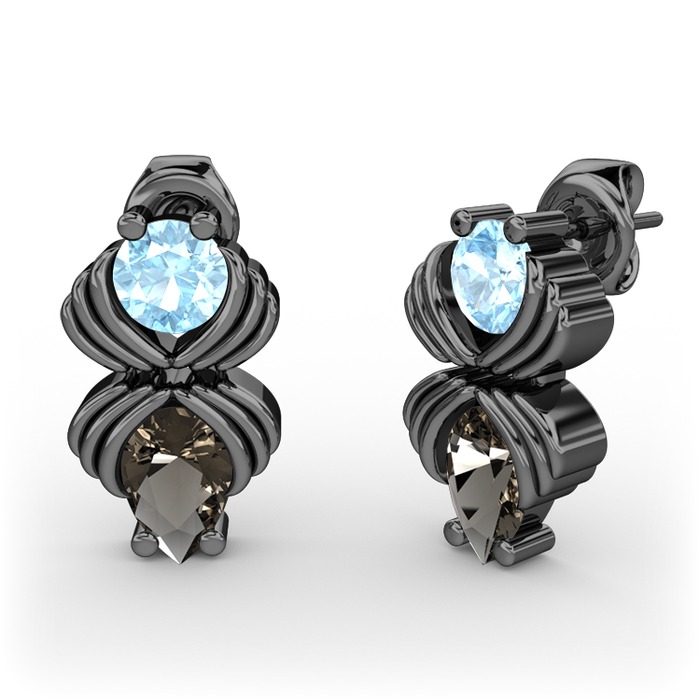 Dumanlı kuvars ve akuamarin 925 ayar siyah rodyum kaplama gümüş küpe
