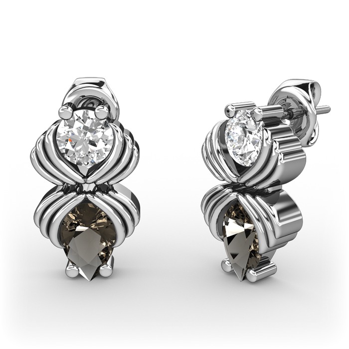Dumanlı kuvars ve beyaz zirkon 14 ayar beyaz altın küpe