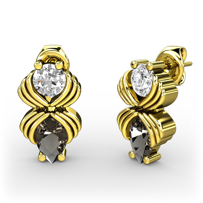 Dumanlı kuvars ve beyaz zirkon 925 ayar altın kaplama gümüş küpe
