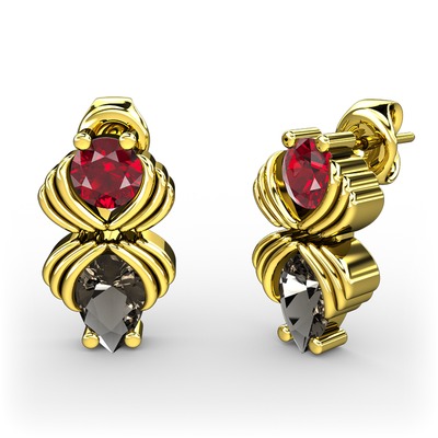 Dumanlı kuvars ve garnet 14 ayar altın küpe