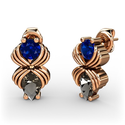 Dumanlı kuvars ve lab safir 14 ayar rose altın küpe