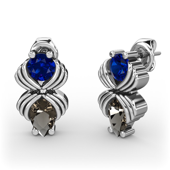 Dumanlı kuvars ve lab safir 8 ayar beyaz altın küpe