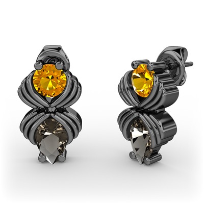 Dumanlı kuvars ve sitrin 925 ayar siyah rodyum kaplama gümüş küpe