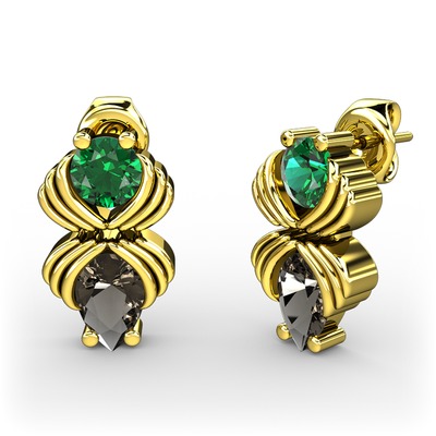 Dumanlı kuvars ve yeşil kuvars 18 ayar altın küpe