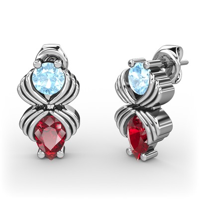 Garnet ve akuamarin 14 ayar beyaz altın küpe