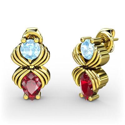 Garnet ve akuamarin 925 ayar altın kaplama gümüş küpe