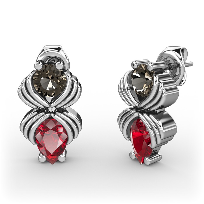 Garnet ve dumanlı kuvars 18 ayar beyaz altın küpe