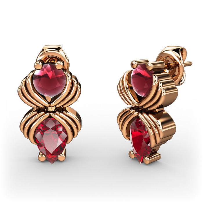 Garnet ve kök yakut 18 ayar rose altın küpe