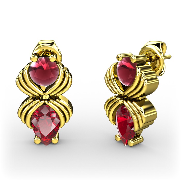 Garnet ve kök yakut 925 ayar altın kaplama gümüş küpe