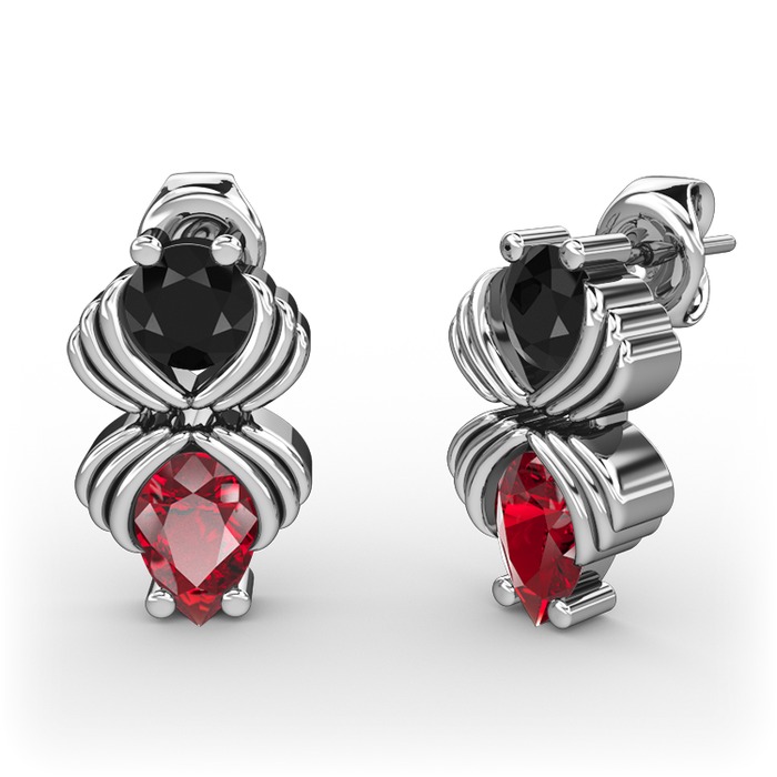 Garnet ve siyah zirkon 8 ayar beyaz altın küpe