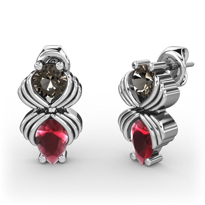 Kök yakut ve dumanlı kuvars 18 ayar beyaz altın küpe
