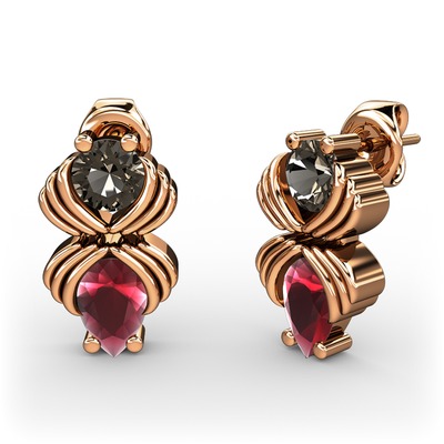 Kök yakut ve dumanlı kuvars 8 ayar rose altın küpe