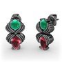Kök yakut ve kök zümrüt 925 ayar siyah rodyum kaplama gümüş küpe