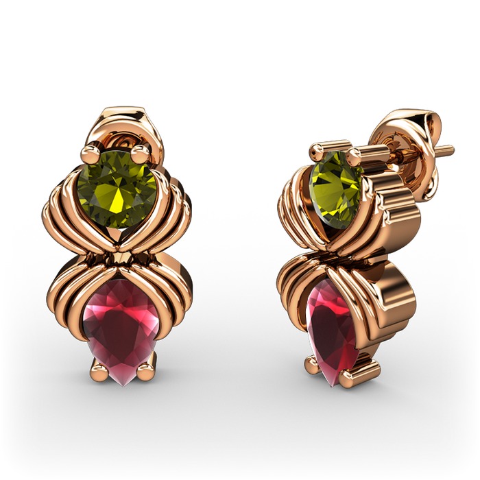 Kök yakut ve peridot 925 ayar rose altın kaplama gümüş küpe