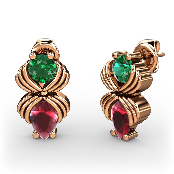 Kök yakut ve yeşil kuvars 925 ayar rose altın kaplama gümüş küpe