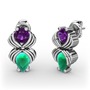 Kök zümrüt ve ametist 14 ayar beyaz altın küpe
