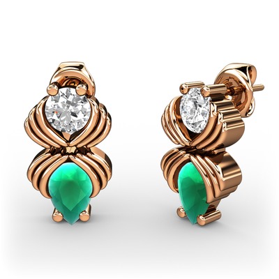 Kök zümrüt ve beyaz zirkon 14 ayar rose altın küpe
