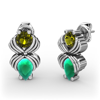 Kök zümrüt ve peridot 925 ayar gümüş küpe