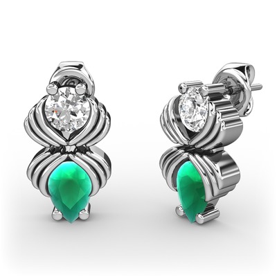 Kök zümrüt ve pırlanta 8 ayar beyaz altın küpe (0.48 karat)