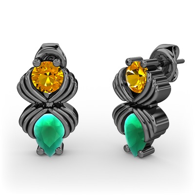 Kök zümrüt ve sitrin 925 ayar siyah rodyum kaplama gümüş küpe