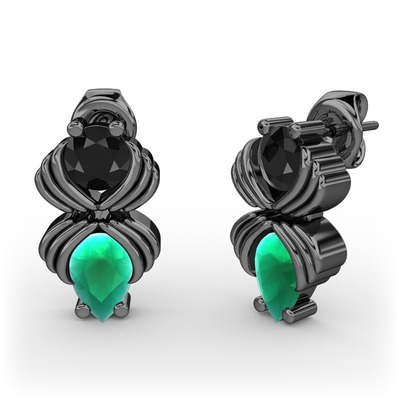 Kök zümrüt ve siyah zirkon 925 ayar siyah rodyum kaplama gümüş küpe