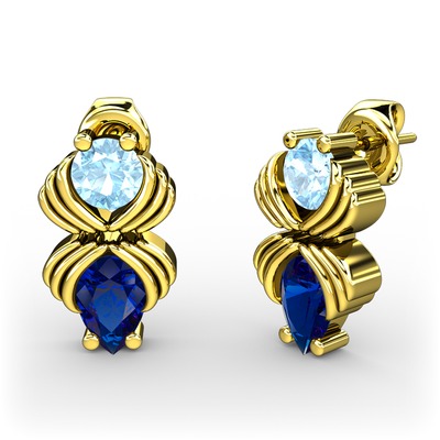 Lab safir ve akuamarin 14 ayar altın küpe