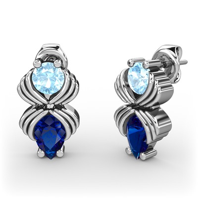 Lab safir ve akuamarin 18 ayar beyaz altın küpe