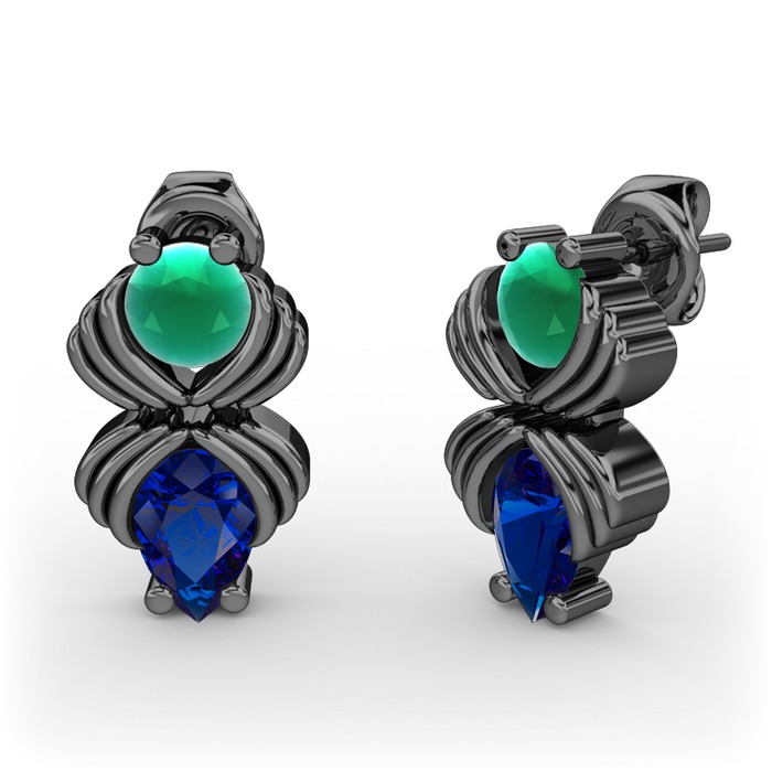 Lab safir ve kök zümrüt 925 ayar siyah rodyum kaplama gümüş küpe