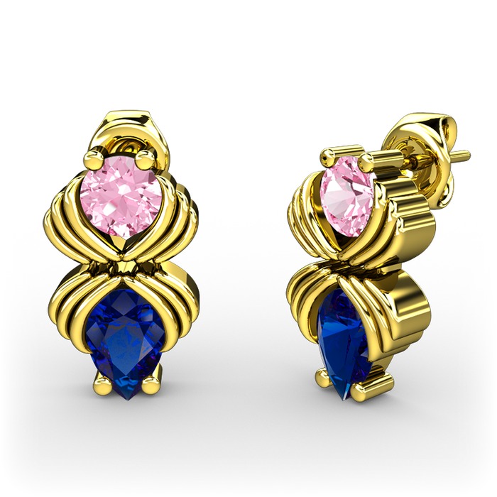 Lab safir ve pembe kuvars 14 ayar altın küpe