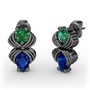 Lab safir ve yeşil kuvars 925 ayar siyah rodyum kaplama gümüş küpe