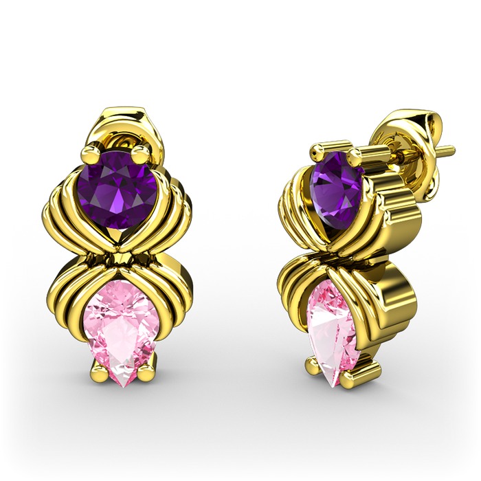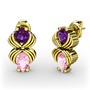 Pembe kuvars ve ametist 18 ayar altın küpe