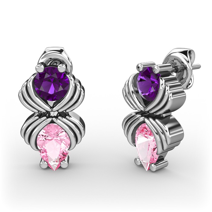 Pembe kuvars ve ametist 8 ayar beyaz altın küpe