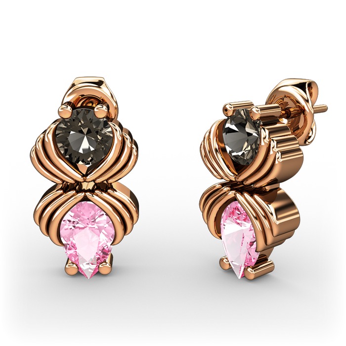 Pembe kuvars ve dumanlı kuvars 14 ayar rose altın küpe