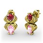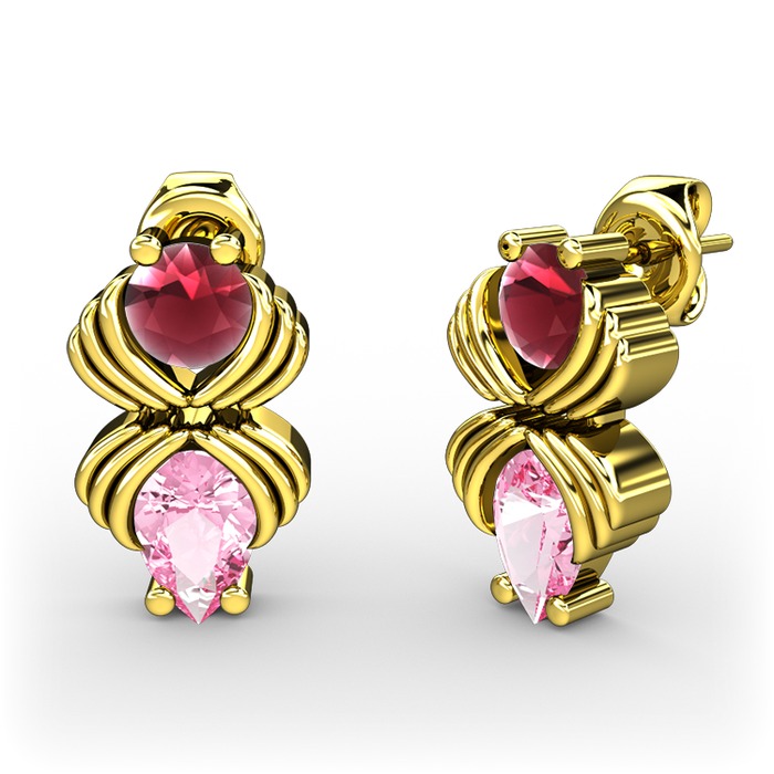 Pembe kuvars ve kök yakut 8 ayar altın küpe