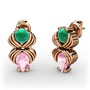 Pembe kuvars ve kök zümrüt 18 ayar rose altın küpe
