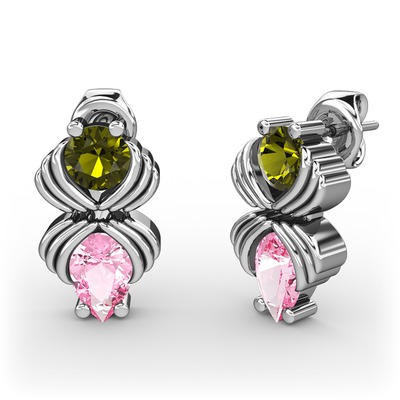 Pembe kuvars ve peridot 18 ayar beyaz altın küpe
