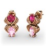 Pembe kuvars ve rodolit garnet 8 ayar rose altın küpe