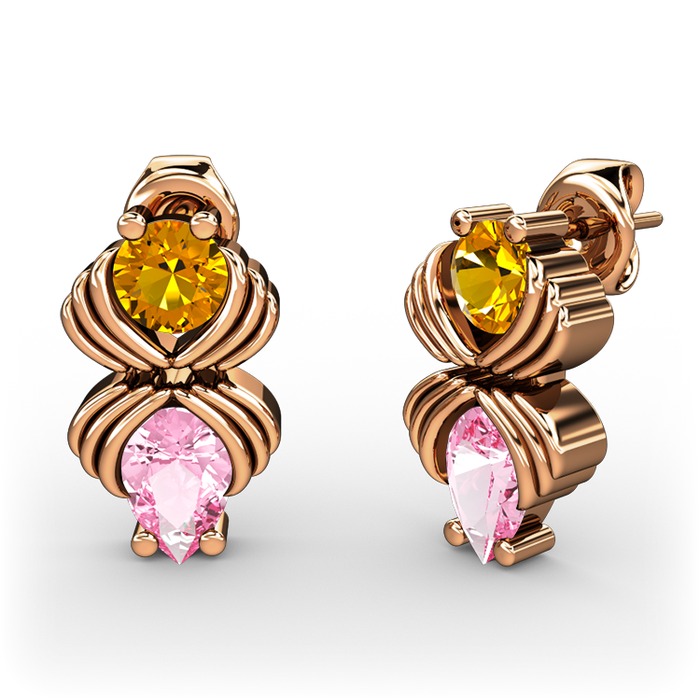 Pembe kuvars ve sitrin 925 ayar rose altın kaplama gümüş küpe