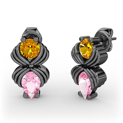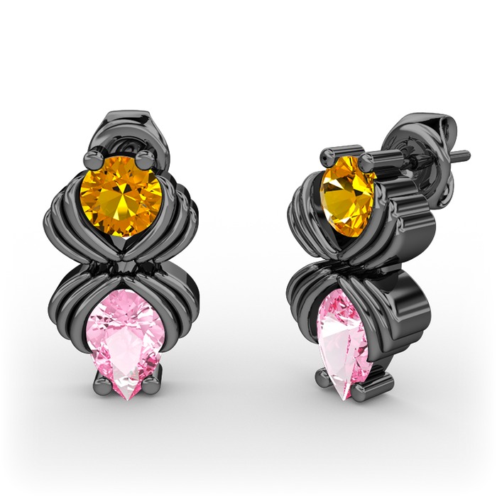 Pembe kuvars ve sitrin 925 ayar siyah rodyum kaplama gümüş küpe