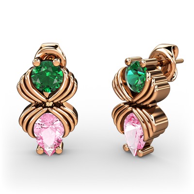 Pembe kuvars ve yeşil kuvars 14 ayar rose altın küpe