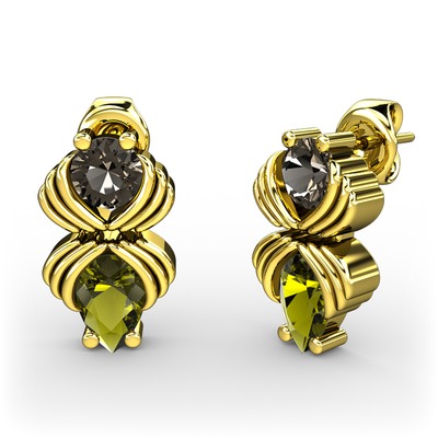 Peridot ve dumanlı kuvars 8 ayar altın küpe