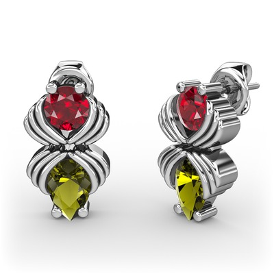 Peridot ve garnet 14 ayar beyaz altın küpe