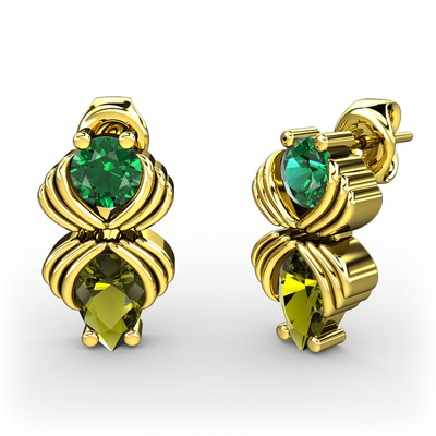 Peridot ve yeşil kuvars 8 ayar altın küpe