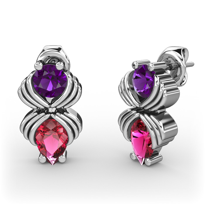 Rodolit garnet ve ametist 14 ayar beyaz altın küpe