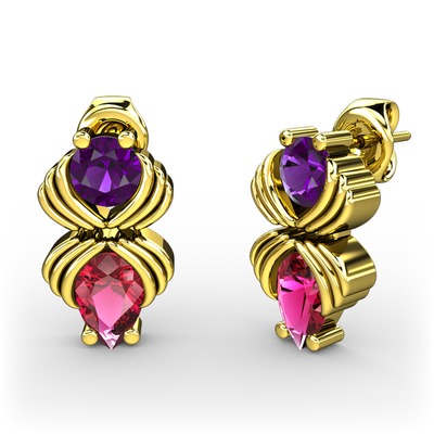 Rodolit garnet ve ametist 8 ayar altın küpe