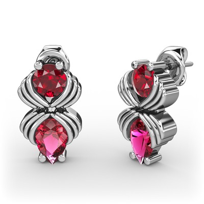 Rodolit garnet ve garnet 18 ayar beyaz altın küpe
